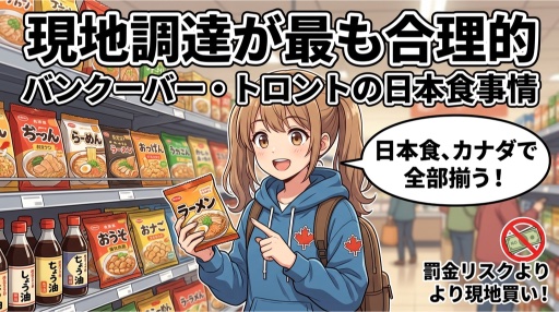 「日本から持ち込もうとしてリスクを負うより、現地で買う」という選択肢は、カナダでは特に合理的だ。もちろん価格は日本より高くなることが多いが、「罰金800ドルのリスク」を天秤にかければ、現地調達の方がはるかに賢い。