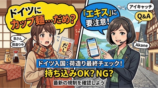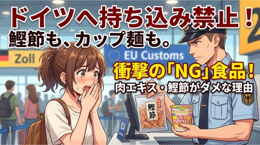 うん、鰹節はEUの規制では「動物性食品」に分類される。出汁パックも、中に鰹節や煮干しが入ってたらアウト。昆布だし100%のパックに切り替えるか、現地のアジア食品店で買うのが安全だよ。ドイツの都市部(ベルリン・ミュンヘン・フランクフルト・デュッセルドルフ)にはアジアスーパーが結構あるからね。