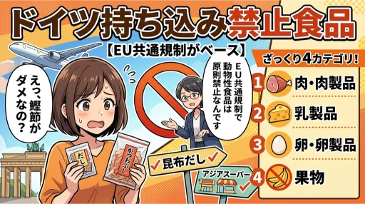 ドイツ(EU)に持ち込み禁止の食品 4カテゴリ